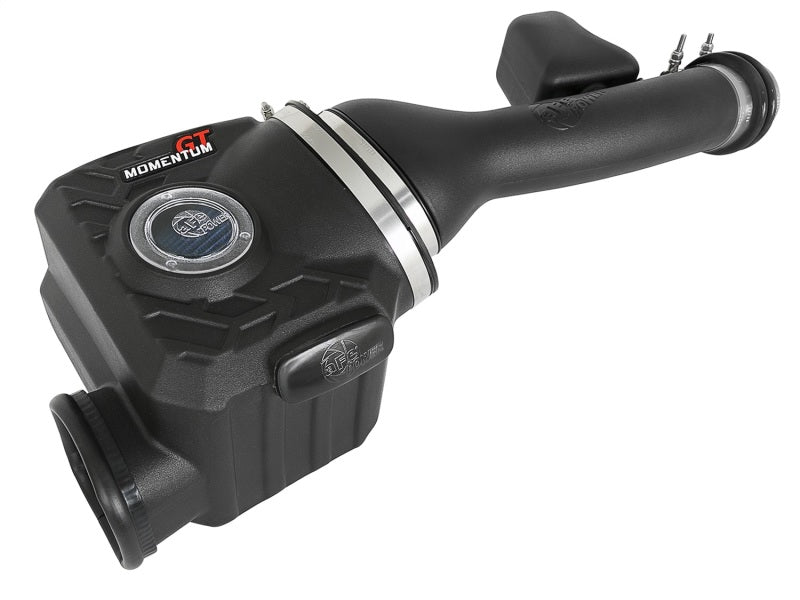 This Momentum GT intake system was designed around the largest filter possible to allow maximum performance and filtration. This cone filter has a large (6-3/4" x 4-3/4") oval flange and is 9" tall with an inverted top. The Pro 5R performance air filter features 5-layers of progressively finer mesh cotton gauze oiled media and is constructed with 100% polyurethane frame for long life and multiple cleaning cycles. A custom CAD designed roto-molded housing made from heat soak resistant material eliminates the use of multiple components and ensures the coolest air intake charge available. A large clear sight window allows for filter inspection without removal of the air box. The roto-molded housing is made out of black cross-linked polyethylene. A urethane plug is also included if you wish to block off the auxiliary air inlet. This system uses a high quality plastic CAD designed, dyno-tuned, roto-molded intake tube to achieve maximum power gains while maintaining a perfect fit. This tube has a built-in resonance chamber to catch un-wanted air intake noises.