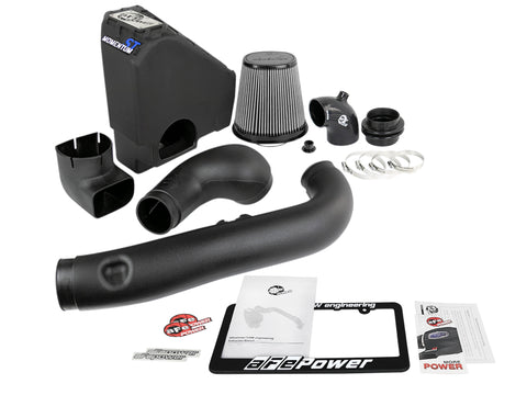 Unique One-Piece Sealed Housing: The smooth one-piece sealed housing with auxiliary air scoop is used to eliminate the use of multiple-piece housings and ensure the coldest air intake charge available. A urethane plug is also included if you wish to completely seal the auxiliary air scoop. High Quality Tube: This system uses a high quality plastic CAD designed, dyno-tuned, roto-molded intake tube to achieve maximum power gains while maintaining a perfect fit. Large 3-Layer Performance Air Filter: This Momentum S T intake system was designed around the largest filter possible to allow maximum performance and filtration. This cone filter has a massive round flange and is 8" tall Pro DRY S filter media. The Pro DRY S performance air filter features 3-layers of progressive finer porosity synthetic media providing maximum convenience with 100% polyurethane frame for long life and multiple cleaning cycles. Premium Hardware: Premium stainless steel clamps and a silicone coupler at the throttle body is used for strength and durability while also providing the most secure installation available. Momentum ST intakes are designed with fewer parts for a quick and simple installation.