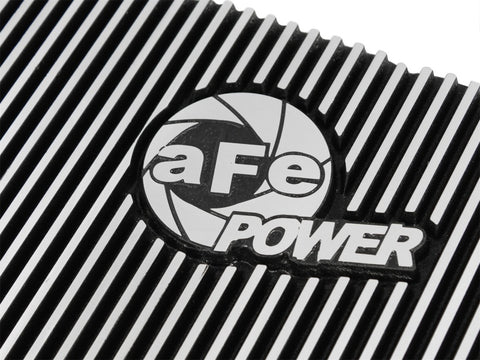aFe Powers new deep transmission pan brings performance engineering to the protection of your trucks transmission. This transmission pan has additional capacity for 3 to 4 more quarts over stock at the factory line, a magnetic drain plug and a 1/8" NPT port for your temperature sensor. Built-in internal and external fins transfer heat from the fluid to the outside air for maximum cooling. This transmission pan is constructed out of durable die-cast A380 aluminum with reinforced ribs and a wrinkle black powder-coating for maximum strength and styling.