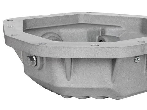 aFe Power's new rear differential cover brings performance engineering to the protection of your axle's differential. This differential cover is constructed out of durable A356-T6 cast aluminum with reinforcing ribs for maximum strength. Mounting hardware is included for a hassle-free installation. A calibration plug set to the factory level prevents overfilling of the differential. A magnetic drain plug and a deep reach magnetic fill plug are provided for maximum protection. This cover has a raw finish with machined fins for a distinctive look. 5 Quart Gear Oil Capacity: This cover has about a 5 quart gear oil capacity at the factory fill level, factory cover holds about 4 quarts. Built-in Cooling Fins: Built-in internal and external cooling fins increase surface area to maximize cooling of the differential oil. Magnetic Drain/Fill Plug: This system incorporates a magnetic drain and deep reach fill plug that captures loose particles for maximum rear-end protection. Oil Level calibration plug: A 1/8" NPT calibration plug is set to the factory fluid level which eliminates accidental overfilling.