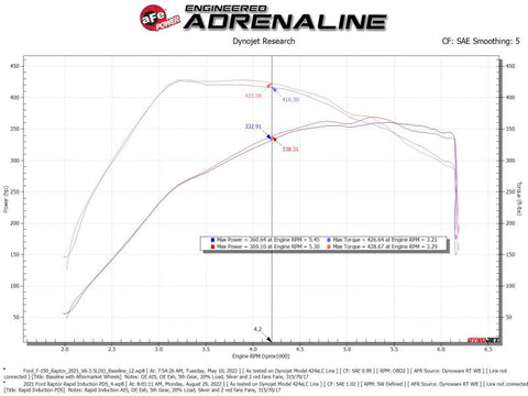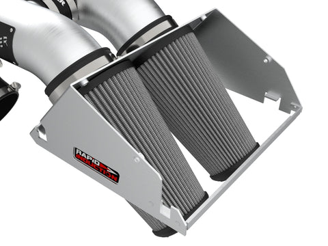 This intake system features dual 8” tall conical air filters with three layers of oil-free synthetic media and requires no oil during maintenance to provide maximum convenience. Its progressive layering provides great filtration efficiency and dust holding capacity. This media is best suited for street and light off-road use. Pro DRY S filters are easily recharged with aFe's POWER CLEANER. Dual one-piece 3-1/2" mandrel-bent brushed aluminum intake tubes direct unrestricted airflow from the massive filters to the turbos for more horsepower and torque. aFe developed this lightweight aluminum brushed heat shield to snap onto the top of the lower half of the factory airbox to provide a hassle-free installation utilizing factory mounting locations. A brushed aluminum cover is used to finish off this intake and add a sense of style to your engine bay. Premium hardware and clamps are used to securely mount the high flow air filters and the intake tubes.