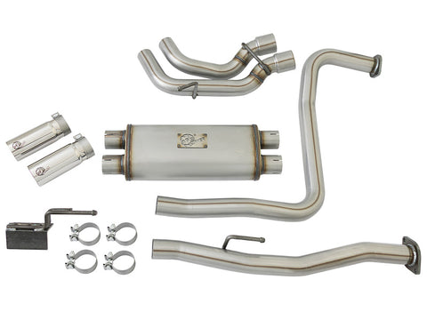 aFe Power introduces an all new Rebel Series dual middle-side exit exhaust system for the 2004-2015 Nissan Titan with V8-5.6L engine. This Rebel Series cat-back is designed with dual black exhaust tips that exit in front of the rear passenger tire for a unique, aggressive look. The tips come with unique laser-etched aFe Power logos on the side and are constructed from stainless steel for durability. The exhaust system is constructed from 2-1/2" MIG-welded, mandrel bent stainless steel tubing for maximum flow, increased horsepower and torque. This kit uses a free-flowing muffler to absorb high pitch tones producing a powerful sound. The performance cat-back exhaust system includes necessary hardware and clamps for a hassle-free install, with no cutting required making it a true bolt on system. 3-1/2" Dia. Black Middle-Side Exit Tips: Finishing off the exhaust are dual 3-1/2" diameter black 304 stainless steel clamp-on tips with a laser-etched aFe power logo on the side for an aggressive style. The tips are designed to exit from in front of the rear passenger side tire for a unique custom look. Installation Is A Snap: This Rebel Series exhaust system uses factory mounting locations providing stability and hassle-free installation. Leak-Free Seal: High quality band clamps are used for a complete 360-degree sealing surface eliminating leak paths. Aggressive Sound: A free-flowing stainless steel muffler is used to absorb high pitch tones producing a powerful sound and unleashing all available horsepower and torque. Perfect Fit: OE-style bayonet hangers are used to maintain a stable pipe location during high vibration and high heat conditions. The bayonet tip holds the hanger bushing in place for an OE-style fit that does not change with time. This makes for an easy installation with no cutting required.