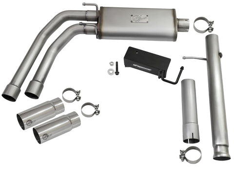 Introducing an all new Rebel Series Dual Center Exit Cat-Back exhaust system for the Jeep Wrangler (JK) with V6-3.6L/3.8L engine. This unique Rebel Series exhaust system is designed with dual center exit tips for an aggressive look. The Tips are 4-1/2" with aFe power plates and constructed out of stainless steel for durability. This performance cat-back exhaust is constructed of 2-1/2" MIG-welded mandrel-bent stainless steel tubing. The smooth curves and increased diameter of this exhaust system helps remove restriction and keeps exhaust gas flowing smoothly for increased horsepower, torque and throttle response. In testing, this cat-back exhaust system added an astounding +9 horsepower and +14 lbs. x ft. of torque as verified by our in house dyno. This exhaust system comes complete with a 22" free-flowing muffler, OE style bayonet hangers, band clamps and all hardware necessary for a hassle-free installation.