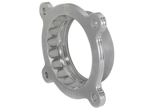 Silver Bullet throttle body spacers create turbulence in the air flow at the point just prior entry into the engine increasing horsepower, torque and improving throttle response and fuel efficiency. Silver Bullet throttle body spacers are constructed out of durable T-6061 billet aluminum and using a unique serrated/helix entry to create turbulence at the manifold while eliminating the annoying whistle found in other helix only throttle spacers.