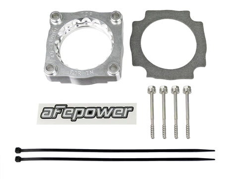 Silver Bullet throttle body spacers create turbulence in the air flow at the point just prior entry into the engine increasing horsepower, torque and improving throttle response and fuel efficiency. Silver Bullet throttle body spacers are constructed out of durable T-6061 billet aluminum and using a unique serrated/helix entry to create turbulence at the manifold while eliminating the annoying whistle found in other helix only throttle spacers.