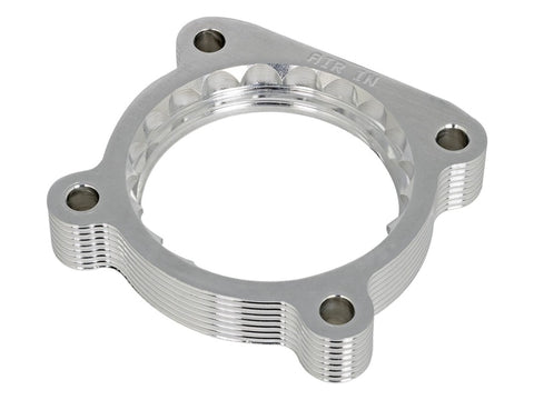 The Serrated/Helix design creates air turbulence in the intake manifold to increase air pressure in the combustion chamber resulting in increased horsepower, torque and improved throttle response. The Serrated/Helix combination design also reduces intake whistle that occurs with other helix only designs. (US PAT 07055513). Made from 6061-T6 Billet Aluminum aFe Silver Bullet Throttle Body Spacers are precision machined for lightweight, high strength and perfect fit. These spacers come with gaskets and use all factory mounting locations for a hassle-free installation.