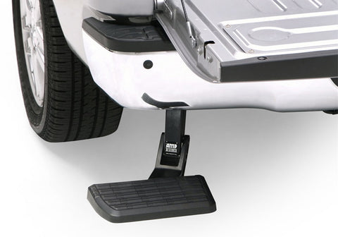 GO AHEAD AND STEP ON IT. BEDSTEP(TM) IS A REAL TIME SAVER. Not to mention knee and back saver. Strong and rugged, this non-slip, retractable bumper step quickly flips down with the nudge of a foot providing a faster, easier and safer way to load or unload your pickup's cargo. Supports up to 300 lbs. Frame-mounts, under the rear bumper so it works even with an open tailgate or when towing. BEDSTEP(TM) is made in the USA and backed by a 3 year-26,000 mile warranty. The AMP Research BedStep(TM) is designed to perform flawlessly in snow, ice, dust, mud and dirt. This lightweight, yet rock-solid bumper step assist employs a rugged die-cast aluminum alloy linkage assembly that is crafted in the USA, and black-anodized and PTFE powder-coated for maximum corrosion protection. Precision, stainless-steel hinge points and press-fit bushings ensure trouble-free action and reliable, maintenance-free operation for decades. Die-cast-aluminum alloy linkage components and precision-machined pivot points give BedStep(TM) rock-solid stability, and PTFE powder-coating ensures years of trouble-free, corrosion-proof operation. The ridged, non-slip step is molded of strong glass-reinforced resin, for safe footing even in mud, snow or ice.