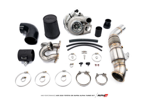 Adding more horsepower to the new Toyota GR Supra has never been easier, with the new AMS Performance A90 2020 Toyota GR Supra ALPHA 6 GTX3076 GEN II Street Turbo Kit. Our team has engineered and built the 2020 GR Supra platform’s first publicly available internally gated full turbo kit that utilizes the OEM electronic wastegate. This unique advancement allows for a seamless integration of the OEM ECU for boost control the way it was intended from the factory. The GR Supra’s electronic wastegate system particularly excels at boost response over mechanical alternatives, making it the ultimate choice for part throttle drivability or on-off throttle situations as seen on a road course.