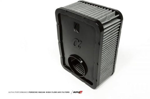 The new Alpha Performance Porsche Macan High-Flow Air Filters are exactly what your performance SUV needs to take deep breaths and produce more power! Simply dropping this filter into your Porsche?s stock air box alone quickens throttle response and livens up the top of the powerband. This is the first in a long line of performance parts you can expect from Alpha for the Porsche Macan. The engineering behind our high-flow filters is what sets them apart.