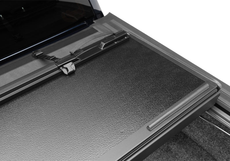 Introducing Extang's Xceed -- a seamless and secure hard folding truck bed cover designed and engineered to greater expectations. This flush mounted, hard-folding cover offers full bed access when open, and adds a seamless and polished look to your truck when closed. Xceed was precisely Extang Engineered to provide excellent coverage while ensuring maximum security and ultimate style. Go completely sleek without minimizing the durability of your truck bed cover. Flush mounted to provide an extreme low profile appearance and engineered to complement your truck's functionality and looks. Xceed's matte black finishes are the final touches to enhance the overall appearance of your truck. Xceed also goes double duty on superior security. The EnduraCoat moisture-proof vinyl covering is dedicated to protecting your cargo from earth's elements and the Secure Rotary Release knob hides the operation cable to add an extra step of protection. Together, you can rest assured that your cargo is entirely secured. Stowing large cargo just got easier. Xceed folds all the way up to the back window, allowing complete, full bed access with a unique four-panel construction to reduce the overall height when open.